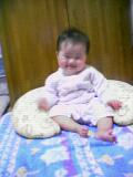 そして、遂に!2003年10月9日早朝!寝返り披露!!!親バカなのか、バカ親なのか分かりませんが、とにかく、しほはちょっとうるうる、、、(笑)。そんな母に向かってご満悦のペロぼー(写真→)。 彼女の寝返りは、今のとこ左方向のみ。手の力だけでぐるぐる移動します。 また、シャイな彼女は、親が見ていない所でそこから仰向けにもなります。人が見ている場所では寝返りさえ打たずに、寝たきり赤ちゃんを気取ります。