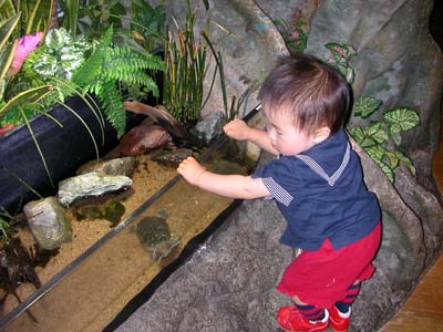 ![]() 水族館 2004/7/15(Thurs) 今朝思い立った。水族館に行こう。 瞼に浮かぶ。暑さで景色が歪んでいる東京とは違うひんやりとした別世界。グラン・ブルーの世界に浮かぶお魚たち。その美しさに目を奪われ、トコトコと歩く我が娘。それを見守るわたし、、、。 、、、今朝のわたしよ。君の想像は間違っている。 サンシャインの水族館に行った。 行く前に必ず忘れていて、行くと必ず持つ感想だが、この水族館は値段の割に大変しょぼい。この暑さの中、エレベーターがない駅の階段を、ペロ、ペロの着替えその他の大荷物、ベビーカーなど15キロ近くを背負い、1時間以上もかけて行くほどの価値はない。 「ほら、イルカよ。」「わぁ、綺麗なお魚ね。」「変な顔ねー。」「くらげだよぉ。」など話しかけても、歩くことにひたすら集中する我が娘の後姿。ひとつだけ反応したのは亀。写真は亀に襲いかかるペロ(笑)。もちろんすぐ止めました。 亀といえば、本家H先生の自宅の外に亀をいれた水槽を出ている。今度あそこを襲撃させ、、、。 ペロは出口付近の土産物屋で、緑のものを手に持ち放さない。 隙をみつけて取り上げたら、床につっぷして泣き出した。肩の震わせ方、横座り度など、女優めいていて中々(笑)。正面にいた中年男性に訴えるようにチラチラ見やる。中年男性も笑っている。わたしも、周りに迷惑かけていることも忘れ笑っちゃいました。すぐ思い出して抱っこして違うとこ連れてったけど、、、。 |