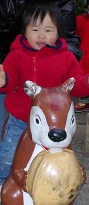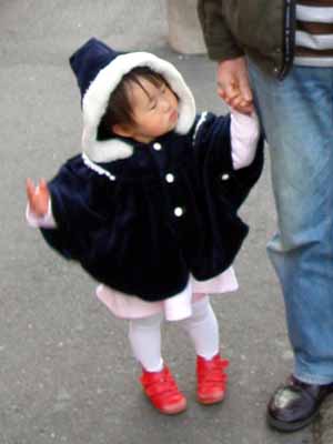 ![]() 初めてのお手伝い 2005/1/18(Tue) 最近、欲と記憶力を身につけてきたペロ。 目の届かないところで描かれるとエライコトになるので家具の上に置いたクレヨンや、なくされたくないおままごとの食器、食材を、しきりにほしがるようになった。 昨日、おままごとで遊ぶのをみていたら、道具を粗雑に扱わなくなったのに気付いた。だから、今日は残りのおままごとのセットも出してあげた。しばらく付き合って、人形に食べさせたりするのをみせたら、あとは一人で楽しく遊んでいた。ソルトケースをコップと勘違いしているので、なおしてあげようとしたら、かんしゃくを起こして投げた(´ー`)┌フッ。もういい。しょっぱい水でも飲んでなさい。 おままごとで遊べるように小さなテーブルも出してあげたら、狭いのなんのって、、、。おもちゃの整理棚つくりたーーーい。時間ほしいな、、。 今日は、お散歩も兼ねてお買い物。 おむつを二つ買った帰り道は、駐車場も兼ねている高架下を通る。 車を指して、不明な言葉を言うので、「これなに?」と聞かれていると思い、しばらく「車。」と5秒ごとに答えた。そのうち、同じ返事では芸がない、そうだ!車種をこたえて、将来、女ゴーンになってもらおう、と思い立つ。しかし、普段、車と縁がない生活をしているので、車種名が書いてないとわからない。三菱の自動車があったので、「ここの自動車は買ってはいけません。」とだけ教えておく。 そのうち、ペロが指しているのが、ナンバープレートであることに気付いた。普通車って、白地に緑の文字なんだね。、、、また、緑、、(´ー`)┌フッ。いやいや、ここは数字を覚えるチャンスなんだ。多分、きっと、、、。と、思いながら、今度はナンバープレートを読んでいく。もし、、もしだよ?ここにある車で犯罪に使われているのがあったらどうしよう、、。で、こんなに能天気にナンバープレートを読み上げていっているわたしは、きっと標的になってしまう、、なんてことを考えながら帰りました。 途中で、ぐずるペロが、おむつの外袋にある緑と象に反応したので、「もってくれる?」と言ったら、嬉々として持って、途中で引きずりながらも最後まで手放さず頑張ってました。