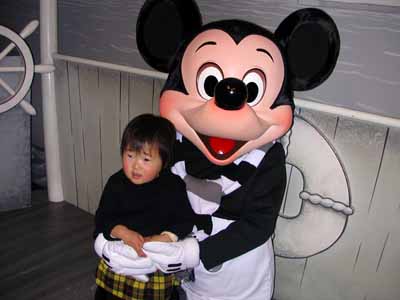 ![]() TDLデビュー 2005/2/23(Wed) キライでは決してないが、特にメロメロ、といったわけではないディズニー。最後にディズニーランドに行ったのはいつのことか、、、。ペロが我が家の一員にならなければ、もしかしたら一生行かなかったかもしれないディズニーランドに行ってきました。 ペロは1歳児。よく歩くといっても、TDLは広い。過去数回行ったTDLの広さにダウンしていたのはいつも私。せめて待ち時間が少ない平日に、と、ひろぼーがわざわざ有給をとってくれたのに、混んでいます。 ひろぼーは入るや否やランチの予約に走る(当然予約できませんでした)。しほとペロは別行動でゆったり歩きながら、プーのアトラクションのファストパスをとりにいく。ええ、ペロはプーのところまで歩けました。乗れるのは4時間後のありがたいファストパスを手に入れる。途中で、白雪姫の7人の小人に会い驚くペロ。 ゆったりトゥーンタウンへ。ミッキーの家に長蛇の列。聞けば90分待ち。他の混んでいない家に入ろうとしたら、ペロが拒否反応を示す。ミッキーの家はミッキーマウスに会えるのが売り。ペロは、自らベビーカーに乗るほどグレていて、彼女のご機嫌をとるため、ドーナツ?ぜめ。途中で、しほもグレて、「ネズミーランド」という題のメールを友達に打ったりする。 90分後。 映画撮影中のミッキーに会えた。ミッキーが出迎えてくれた途端、びっくりして舞い上がるペロ。指差して、「マイマッチ、マイマッチ(ミッキーマウス)。」と言う。ペロはすっかりご機嫌に。団体の最後だったので、2枚写真が撮れた。それにしても、ペロは写真をとるとき、愛想がないなぁ、、、(笑)。