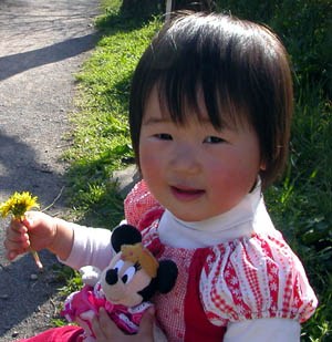 ![]() 2005/7/20(wed) ■ 収穫 ■ 久しぶりに農園へ行ったら、雑草が茂り、枝豆も怪しく実っていた。だから、少しだけ枝豆を収穫した。夕方に一人で行き、黙々と雑草を抜いていたら、びっくらするほど蚊に刺された。みなさんがひくと思いますのでアップしませんが、本当は刺された箇所をアップして、ここねあたりを「きゃーーー!」と言わせたいものです。 ■ ぬいぐるみ ■ 7月はじめになくした、ペロの一番お気に入りのぬいぐるみ。プリセスデイズのミニーマウスのぬいぐるみバッチ。 まだ、しつこく、夜起きたときなどに、「ミニー、ないねー。いっちゃった。」などと言うので、根負けして、違うミッキーとミニーマウスを買ってあげました。 ![]() 大喜び。盛んに、「ぅぅわっ!(こんにちは)」と、挨拶をさせまくる。ミッキーよりもミニーがお気に入り。それでも「ピンクのミニーいないね。」と言います。このミッキーとミニー、なんとなく見ていると、阪神そのものです。ミッキーに至っては、本家スタジオ主宰者のH先生にも見えてきました。 しつこくて申し訳ありませんが、「大事にしてね。ポイしないでね。約束よ。」と念をおし、家の中でちょっとでもポイしたら、「あーあ。また、ポイしちゃうんだ。あのミニーと同じようにいなくなるんだ。」と言ってしまいます。わたしって本当にしつこいね、、(笑)。 そして、昨日、処方された薬をもらいに行ったら、そこに白無垢姿のキティーが、、、。ペロ、抱っこして離さない。「かわいーかわいー。」としきりに言う。用が済んで帰ろうとしたら、「キティーちゃん、キティーちゃ〜〜〜ん!」と大泣き。無理やり外に連れ出す。薬剤師さんが飛んできた。そして、事情を知ると、「キティーちゃん、あげるわよ。」と言ってくれました。2回固辞しましたが、目の前にキティーが出てきて、ペロはもらう前から「あっとう。あっとうー(ありがとう)。」と最敬礼。申し訳なく思いましたがいただきました。数年前にマクドナルドのおもちゃで出されたものだと思います。 キティーを手にいれたペロに言い聞かせる。「大事にしようね。」。帰宅したペロは、白黒ミッキーを「おうち」と、ぬいぐるみ箱にポイッ。おい!!それでも、ミニーはキティーと同格。一緒にネンネ。夜、起きて別室に移動するとき、キティーのみ連れて移動。「ミニーは?」と聞くと、「ミニーいいの。」と言う。あああああ、親の気持ちは、、、。 と言いながら、プリンセスデイズのミニーマウスのぬいぐるみバッチが、オークションに出たので、ひろぼーの命により落札いたしました。しばらく隠しておきます。来年の誕生日あたりにあげましょうか(笑)。 そして、今日。 もはや、キティーは、台所に置き去りです。「大事にするって言ったからもらったのに、、がっかり。」というと、おまるの中にいれました。やっぱりもらってくるんじゃなかったなぁ、、、。 ■ 児童館にて ■ 暑いので、児童館に2日連続で行きました。ペロは児童館の外階段をほんの少しだけ左右互い違いに出してのぼりました。今まで、幼児用の車は押すのみでしたが、乗ることも少しできました。ピアノも触りました。「ペロ、あそぶー。」と人がやっているおもちゃに行きます。「ペロ、あそぶーあそぶーあそぶー。」と泣きも入ります。自分が遊んでいるおもちゃに触られると、相手をぶつようになりました。 相変わらず幼稚園児を追いかけます。今日のターゲットは、先日、わたしと喧嘩?した幼稚園児です。割と楽しく遊んでいたのですが、ペロのあまりのしつこさに、「僕を忘れてくれたら、好きになってあげる。」と言われてしまいました。「おにいちゃんにはおにいちゃんの遊び方があるのよ。」と言ってもあまり聞きません。その子も可哀相だったので、強引に違う場所に連れて行き、別のおもちゃを与えました。が、おにいちゃんの魅力にメロメロよ〜〜、なペロには、ちょっと困りました。単純に遊びたいだけなんだけどね(´ー`)┌フッ。 |
