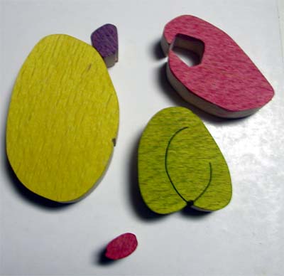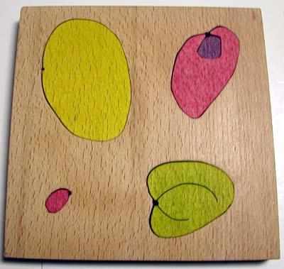 ![]() 2006/3/17(Fri) ■ ペロ作品 ■ ペロが通っているアトリエでの2作品目は木のパズル。 ![]() ![]() 工程としては、まず、はじめにペロが自由に絵を描く。それを木に貼り付ける。木を切る体験はしましたが、さすがに作品自体は先生(先生といってはいけないらしいが便宜上先生と書いておきます)が切ってくれました。色塗りはペロの仕事。 ちなみに、元絵を描いた時点では、これはミニーちゃんでした。色を塗った時点で、「これなあに?」と聞いたら「わかんない。」と答えました。緑はハートらしいです。どうでもいいが、これはこれで中々いいと思いました。 さて、もう一つペロの作品です。今年正月に出会った獅子舞が、ペロの脳裏に刻み付けられたことは何度か日記でお伝えしました。最近、毎日、獅子舞を粘土で作っています。毎日、変化しています。 昨日写真に撮りましたが、どこかにデータが消えてしまいました。残念。今日の獅子舞には、手が生えました。