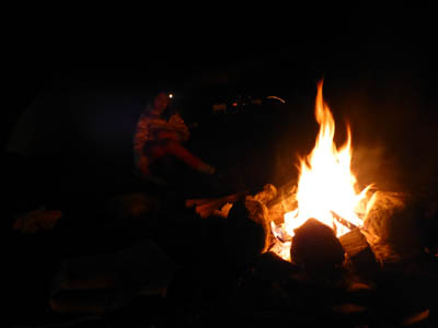あちらこちらで焚き火の火があがり、ペロのリクエストにこたえて焚き火専用の薪(600円)を購入。他人がやったあとに焚き火をするので設営せずともぼーぼーに燃える。